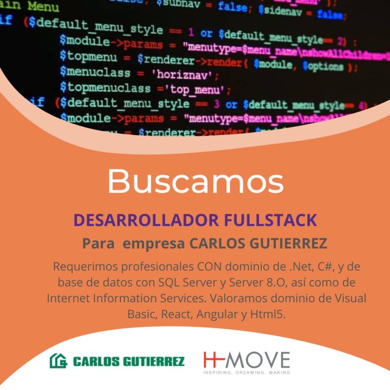 Buscamos Desarrollador Fullstack para incorporar a equipo de Carlos Gutierrez
